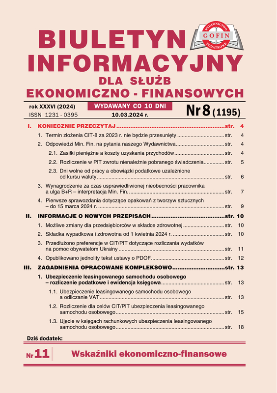 e-Kiosk.pl - Biuletyn Informacyjny dla Służb Ekonomiczno-Finansowych 8/2024