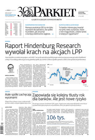 Gazeta Giełdy i Inwestorów Parkiet przyspiesza publikację e-wydania. Od poniedziałku, już od godz. 20.00, można kupić i przeczytać e-wydanie Parkietu, które w wersji papierowej ukaże się dopiero następnego dnia. Parkiet jest więc najświeższą gazetą finansową w Polsce.
