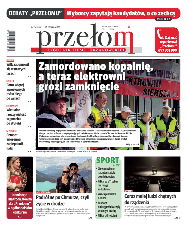 „Przełom” jest jedną z najlepszych i największych gazet lokalnych w Polsce. Powstał 16 września 1990 r. i ukazuje się nieprzerwanie do dziś. Zasięgiem obejmuje obecnie pięć gmin powiatu chrzanowskiego: Alwernię, Babice, Chrzanów, Libiąż i Trzebinię oraz gminę Krzeszowice w powiecie krakowskim i gminę Chełmek w powiecie oświęcimskim. W 1994 r. zdobył I nagrodę IDEE (Fundacji na Rzecz Demokracji w Europie Wschodniej, a w 2000 r. tytuł gazety 10-lecia sygnowany przez premiera rządu RP i ministra kultury. Tytuł dwukrotnie nagradzany przez Narodowy Fundusz Ochrony Środowiska, w 2000 r. zdobył I nagrodę w konkursie dla gazet mających największy wpływ na kształtowanie świadomości ekologicznej.