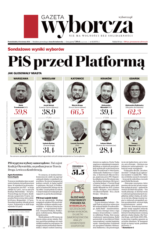Największa opiniotwórcza gazeta w Polsce. Powstała w 1989 roku jako platforma pierwszych demokratycznych wyborów do parlamentu. Pierwszy numer ukazał się w nakładzie 150 tys. egzemplarzy. Dziś „Gazeta” jest najchętniej kupowaną i czytaną opiniotwórczą gazetą codzienną, ukazującą się w 23 miastach Polski, wzbogaconą o szereg popularnych dodatków tematycznych, a serwis internetowy Wyborcza.pl jest najpopularniejszą stroną tytułu prasowego w polskim internecie.