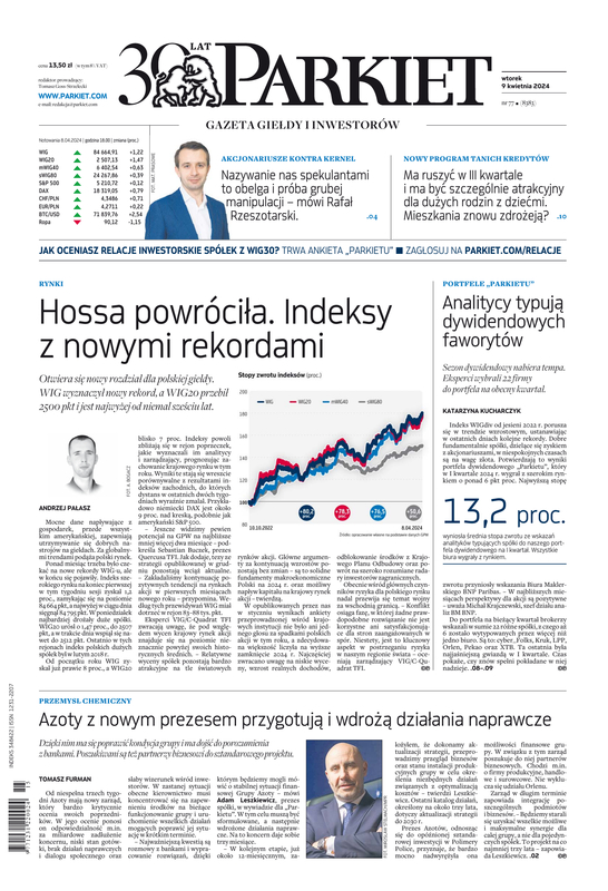 Największy w Polsce newsroom gospodarczy zbiera, analizuje i zgłębia dla Państwa najważniejsze informacje ze świata finansów. Codzienne wydanie „Parkietu”, sześć dni w tygodniu, to kilkadziesiąt artykułów o emitentach, instytucjach finansowych, gospodarce. To również opinie, felietony i wywiady z najważniejszymi ludźmi krajowej i globalnej finansjery.