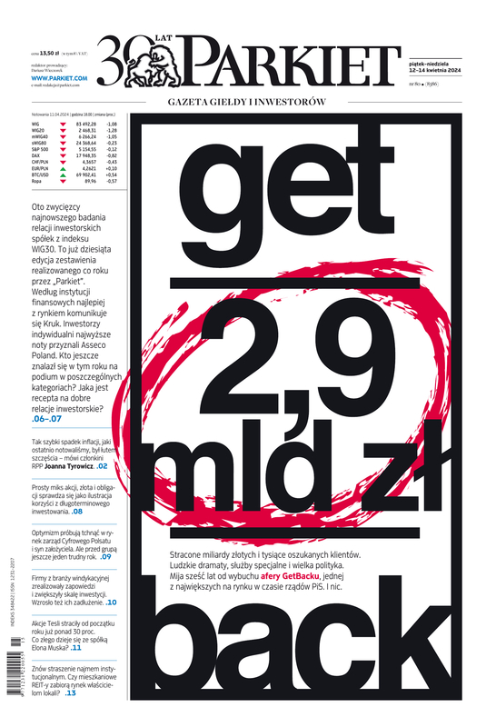 Największy w Polsce newsroom gospodarczy zbiera, analizuje i zgłębia dla Państwa najważniejsze informacje ze świata finansów. Codzienne wydanie „Parkietu”, sześć dni w tygodniu, to kilkadziesiąt artykułów o emitentach, instytucjach finansowych, gospodarce. To również opinie, felietony i wywiady z najważniejszymi ludźmi krajowej i globalnej finansjery.