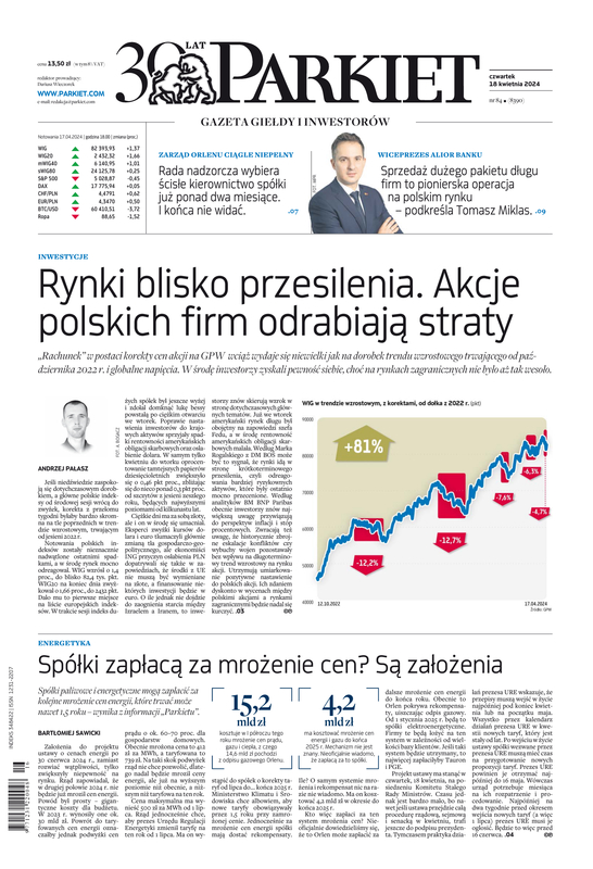 Największy w Polsce newsroom gospodarczy zbiera, analizuje i zgłębia dla Państwa najważniejsze informacje ze świata finansów. Codzienne wydanie „Parkietu”, sześć dni w tygodniu, to kilkadziesiąt artykułów o emitentach, instytucjach finansowych, gospodarce. To również opinie, felietony i wywiady z najważniejszymi ludźmi krajowej i globalnej finansjery.