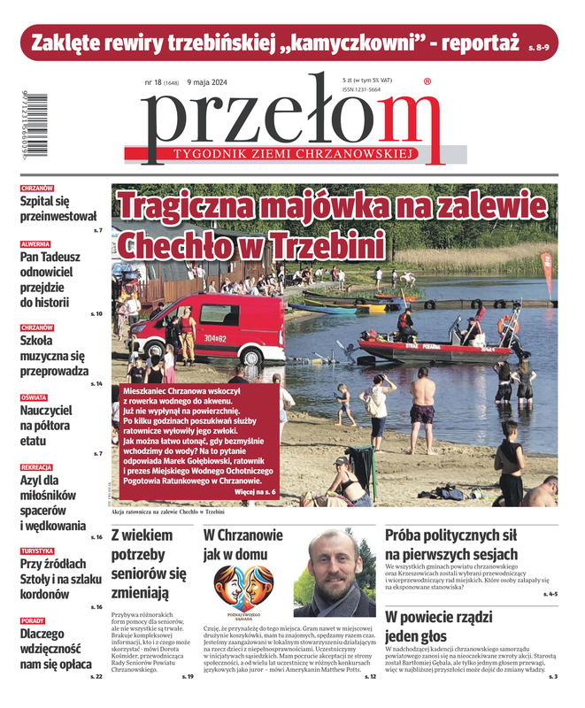 „Przełom” jest jedną z najlepszych i największych gazet lokalnych w Polsce. Powstał 16 września 1990 r. i ukazuje się nieprzerwanie do dziś. Zasięgiem obejmuje obecnie pięć gmin powiatu chrzanowskiego: Alwernię, Babice, Chrzanów, Libiąż i Trzebinię oraz gminę Krzeszowice w powiecie krakowskim i gminę Chełmek w powiecie oświęcimskim. W 1994 r. zdobył I nagrodę IDEE (Fundacji na Rzecz Demokracji w Europie Wschodniej, a w 2000 r. tytuł gazety 10-lecia sygnowany przez premiera rządu RP i ministra kultury. Tytuł dwukrotnie nagradzany przez Narodowy Fundusz Ochrony Środowiska, w 2000 r. zdobył I nagrodę w konkursie dla gazet mających największy wpływ na kształtowanie świadomości ekologicznej.
