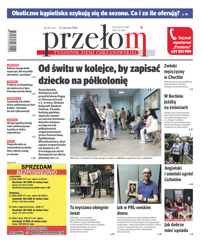 „Przełom” jest jedną z najlepszych i największych gazet lokalnych w Polsce. Powstał 16 września 1990 r. i ukazuje się nieprzerwanie do dziś. Zasięgiem obejmuje obecnie pięć gmin powiatu chrzanowskiego: Alwernię, Babice, Chrzanów, Libiąż i Trzebinię oraz gminę Krzeszowice w powiecie krakowskim i gminę Chełmek w powiecie oświęcimskim. W 1994 r. zdobył I nagrodę IDEE (Fundacji na Rzecz Demokracji w Europie Wschodniej, a w 2000 r. tytuł gazety 10-lecia sygnowany przez premiera rządu RP i ministra kultury. Tytuł dwukrotnie nagradzany przez Narodowy Fundusz Ochrony Środowiska, w 2000 r. zdobył I nagrodę w konkursie dla gazet mających największy wpływ na kształtowanie świadomości ekologicznej.