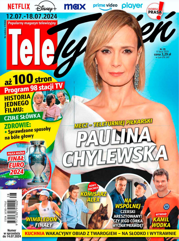 Tygodnik Tele Tydzień to najchętniej kupowany i najczęściej czytany tytuł prasowy w Polsce. Czasopismo jest ekspertem w dziedzinie telewizji! Wysoka jakość pisma powoduje, że cieszy się uznaniem Polaków już od 27 lat - nie zwlekaj i zamów magazyn online! W tygodniku znajdziesz: tematy dotyczące telewizyjnych produkcji i gwiazd, relacje z planów filmowych i serialowych oraz nowości kinowe, rekomendacje najciekawszych filmów i programów na każdy dzień tygodnia, streszczenia seriali oraz najbardziej interesujące wydarzenia ze świata show-biznesu, wywiady z gwiazdami i kulisy telewizji oraz rozbudowaną część poradnikową - prawdziwe kompendium wiedzy dla całej rodziny z zakresu zdrowia, urody, zagadnień konsumenckich, kulinariów oraz turystyki.