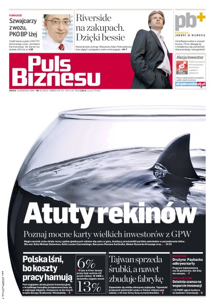 Poznaj mocne karty wielkich inwestorów z GPW; Credit Suisse wyszło z PKO TFI kierowanego przez Jarosława Karnowskiego; Polska pod względem atrakcyjności inwestycyjnej przekształca się z brzydkiego kaczątka w pięknego łabędzia; tajwański producent elektroniki szuka w Polsce miejsca pod zakład, a 32 inne firmy liczą na kontrahentów; gigant TUI wabi zagranicznych turystów do Polski; w małych firmach w co trzecim serwerze zainstalowano bezpłatny system operacyjny; analitycy Millennium DM wytypowali giełdowych deweloperów, którzy najlepiej poradzą sobie w różnych warunkach rynkowych.