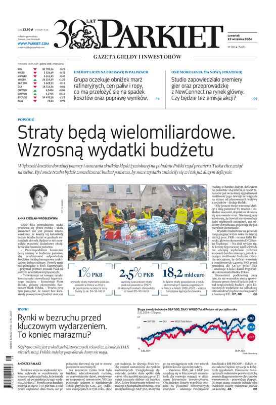 Największy w Polsce newsroom gospodarczy zbiera, analizuje i zgłębia dla Państwa najważniejsze informacje ze świata finansów. Codzienne wydanie „Parkietu”, sześć dni w tygodniu, to kilkadziesiąt artykułów o emitentach, instytucjach finansowych, gospodarce. To również opinie, felietony i wywiady z najważniejszymi ludźmi krajowej i globalnej finansjery.