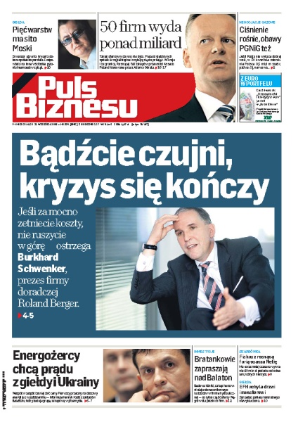 PGNiG oszacowało, że w czwartym kwartale 2009 roku, może zabraknąć 0,5 mld m sześc gazu – na szczęście magazyny rezerwowe są pełne; od 20 tys. zł do nawet 2 mln zł można otrzymać na budowę pomostów internetowych między kooperującymi spółkami; prof. Burkhard Schwenker, prezes Rolanda Bergera radzi polskim firmom aby szykowały się na znaczne ożywienie gospodarki; Netia ma problemy ze skarbówką – inspektorzy żądają podatku od odsetek których nie było; władze Europejskiego Funduszu Hipotecznego nie wykluczają sprzedaży pakietu kontrolnego.