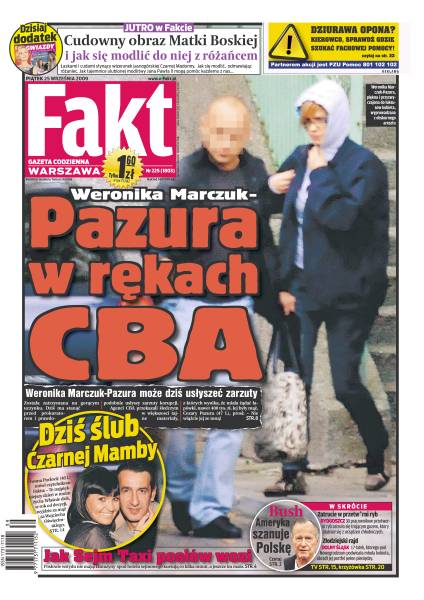 Weronika Marczuk-Pazura może dziś usłyszeć zarzuty, grozi jej nawet 10 lat więzienia; George Bush, Jose Aznar i Vytautas Landsbergis odpowiadają na pytanie, jak interpretować decyzję Baracka Obamy o rezygnacji z tarczy antyrakietowej; posłowie chcą dodatkowych 830 tys. zł na nowe auta ale czy rzeczywiście są im one niezbędne; jak przeżyć za 67 zł miesięcznie; jak wyglądał w dzieciństwie Zbigniew Ziobro.