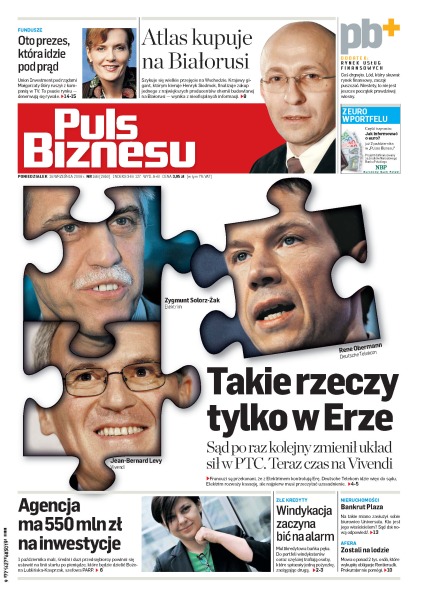 Multikredytorzy stali się multidłużnikami i trafiają do windykatorów, po wyroku polskiego sądu Vivendi triumfuje, ale końca sporów nie widać, jesienią Polska Agencja Rozwoju Przedsiębiorczości rozda 550 mln zł, Atlas ma przejąć dużego producenta z Białorusi, wierzyciele Rentier.dk nie mogą odzyskać 6 mln zł – prokuratura umywa ręce, Union Investment rozpoczął kontrowersyjną kampanię telewizyjną o aktywa akcyjne, nowe propozycje KNF mają chronić akcjonariuszy mniejszościowych. Dodatek PB+ Rynek usług finansowych.
