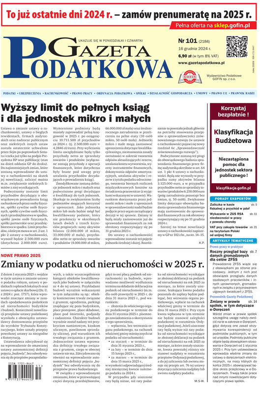 e-Kiosk.pl - Gazeta Podatkowa 16.12.2024 (101)