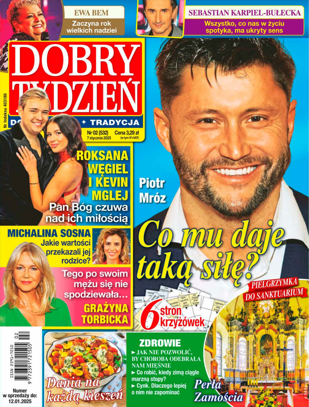 Tygodnik Dobry Tydzień to kolorowy magazyn inny niż wszystkie! Co tydzień udowadnia, że gwiazdy to nie tylko pogubieni skandaliści, ale osoby takie jak Ty, dla których tradycja, rodzina, wiara i dobro są drogowskazami. Pokazuje, że małe cuda dzieją się w życiu i sławnych, i zwykłych ludzi. Ocala od zapomnienia bohaterki i bohaterów, dzięki którym Polska jest wolna. Dobry Tydzień przypomina niezwykłe historie świętych, udowadniając, że droga do świętości nie jest nudna. W tygodniku znajdziesz też kalendarium katolika z patronem, a także poruszającym Słowem Bożym na każdy dzień. Magazyn co tydzień zabiera na pielgrzymkę do najpiękniejszych polskich sanktuariów.