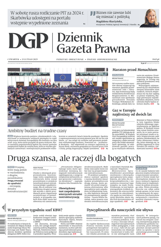 Gazetę wzbogacają praktyczne dodatki dla specjalistów, niedostępne w kioskach: Księgowość i Podatki, Rachunkowość i Audyt, Firma i Prawo, Samorząd i Administracja, Prawnik, Kadry i Płace, Ubezpieczenia i Świadczenia. NOWOŚĆ 2021 r. dodatki Biuro Rachunkowe i Księgowość Budżetowa (dostępne raz w miesiącu). Dodatkowo publikujemy wyjątkowo cenione przez Czytelników specjalne dodatki dotyczące najważniejszych zmian, nowych rozwiązań, na gorąco odpowiadamy na pytania. Piszemy o pracy zdalnej, o tarczach antykryzysowych, o nowych przepisach do walki z epidemią, o sposobach walki z zatorami płatniczymi i nowych obowiązkach pracodawców. Zapewniamy bezpieczeństwo w stosowaniu zmieniającego się prawa.