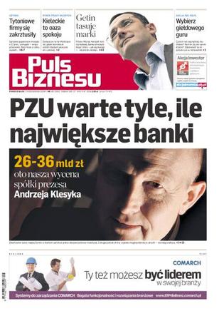 PZU jest warte 26-36 mld zł, czyli tyle, ile największe banki; sprzedaż papierosów zmalała o 12 proc., szmugiel wręcz przeciwnie; czyich rad najchętniej słuchacie i na kim się nie zawiedliście; Wielkopolska przeżywa epidemię bezrobotnych absolwentów, a w Świętokrzyskiem spokój; nawet pięć lat za kratkami może grozić za ustawianie zamówień; wejście z numizmatyką do nowych krajów Unii oraz Ameryki Północnej to jeden z wielu planów spółki IAP; czwartkowa demonstracja siły naszego rynku na końcowym fixingu w piątek się na nas zemściła; PKO BP chce mocniej rozpychać się na rynku.