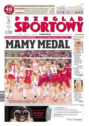 Polki zakończyły turniej ME w siatkówce fantastycznym meczem z Niemkami, w którym wygrały 3:0; Wisła Kraków ma już 8 punktów przewagi nad Legią i 11 nad Lechem; Bayern bez gola w trzecim kolejnym meczu - ma już osiem punktów straty do lidera Bundesligi; Manchester United tylko przez tydzień był na pierwszym miejscu w Premier League; pełne wypadków kwalifikacje i ciekawy wyścig w Grand Prix Japonii - Robert Kubica bez przygód, ale i bez punktów; prezes PZPN ma aspiracje, żeby rządzić nie tylko związkiem, ale również drużyną narodową; Otylia Jędrzejczak w Londynie chce przekroczyć kolejną granicę.
