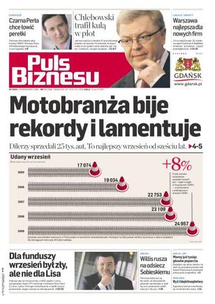 Dilerzy sprzedali 25 tys. aut - to najlepszy wrzesień od sześciu lat; premier Tusk zapewnił, że przyspieszy uchwalenie ustawy o finansowej odpowiedzialności urzędników; wysocy rangą politycy PO zapłacili posadami za niejasne związki z hazardem; współpraca grupy Totmes i Wrocławskiego Domu Maklerskiego nabiera rumieńców; Warszawa awansowała w rankingu europejskich miast; duże województwa wciąż przyciągają najwięcej inwestycji i najlepiej sobie radzą z kryzysem; prezydent Gdańska ogłosił konkurs dla inwestorów na zagospodarowanie Targu Siennego i Targu Rakowego; polskiej giełdzie sprzyja zyskujący złoty, ale ciążą duże oferty PGE i PKO BP.