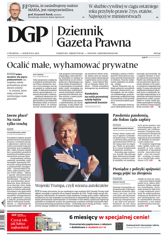 Gazetę wzbogacają praktyczne dodatki dla specjalistów, niedostępne w kioskach: Księgowość i Podatki, Rachunkowość i Audyt, Firma i Prawo, Samorząd i Administracja, Prawnik, Kadry i Płace, Ubezpieczenia i Świadczenia. NOWOŚĆ 2021 r. dodatki Biuro Rachunkowe i Księgowość Budżetowa (dostępne raz w miesiącu). Dodatkowo publikujemy wyjątkowo cenione przez Czytelników specjalne dodatki dotyczące najważniejszych zmian, nowych rozwiązań, na gorąco odpowiadamy na pytania. Piszemy o pracy zdalnej, o tarczach antykryzysowych, o nowych przepisach do walki z epidemią, o sposobach walki z zatorami płatniczymi i nowych obowiązkach pracodawców. Zapewniamy bezpieczeństwo w stosowaniu zmieniającego się prawa.