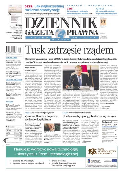 Pomysły Donalda Tuska na ratowanie wizerunku partii i szans na prezydenturę po aferze hazardowej; Zygmunt Bauman: jaki będzie świat po kryzysie; projekty dyscyplinowania zadłużonych uczelni; jak skorzystać z nielimitowanego odliczenia darowizn kościelnych; co zamiast użytkowania wieczystego; kosztowna „Rodzina na swoim”: rata kredytu z dopłatą może być nawet dwa razy wyższa niż zwykłego.