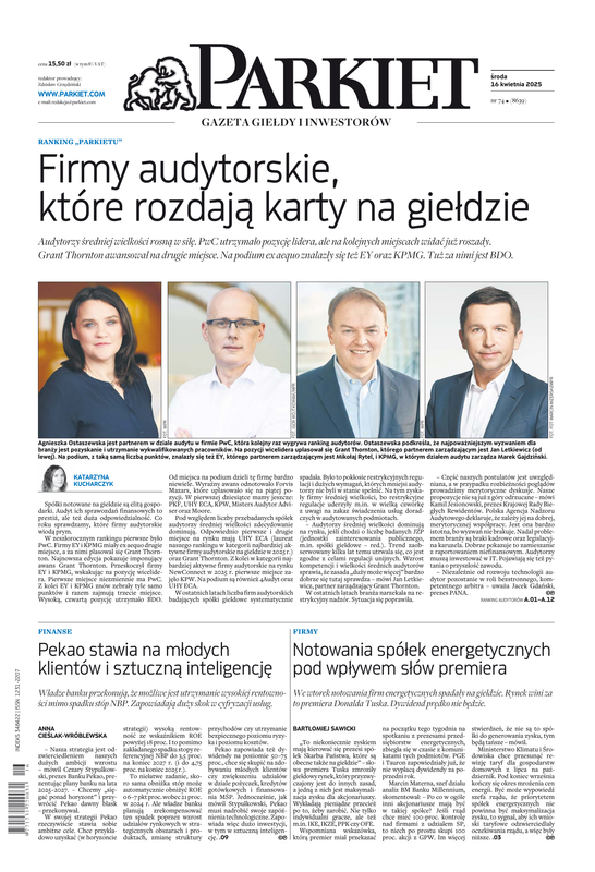 Największy w Polsce newsroom gospodarczy zbiera, analizuje i zgłębia dla Państwa najważniejsze informacje ze świata finansów. Codzienne wydanie „Parkietu”, sześć dni w tygodniu, to kilkadziesiąt artykułów o emitentach, instytucjach finansowych, gospodarce. To również opinie, felietony i wywiady z najważniejszymi ludźmi krajowej i globalnej finansjery.