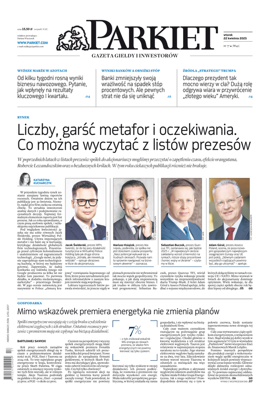 Największy w Polsce newsroom gospodarczy zbiera, analizuje i zgłębia dla Państwa najważniejsze informacje ze świata finansów. Codzienne wydanie „Parkietu”, sześć dni w tygodniu, to kilkadziesiąt artykułów o emitentach, instytucjach finansowych, gospodarce. To również opinie, felietony i wywiady z najważniejszymi ludźmi krajowej i globalnej finansjery.