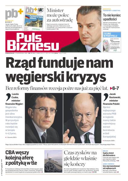 Gdyńscy związkowcy spierają się o legalność prywatyzacji spółek-córek; PGE rusza z ofertą publiczną wartą 5-6 mld zł; banki chcą finansować budowę autostrady, ale projekt może polec; więcej obowiązków, a więc też wydatków dla dostawców internetu - tak wygląda projekt nowych przepisów; giełdowy rajd, który trwa już od sześciu miesięcy, musi się kiedyś skończyć - będzie dobrze, jeśli bilans czwartego kwartału wyjdzie na plus; najlepszy analityk świata według Bloomberga wierzy w naszą walutę; strumień towarów i usług płynących przez polsko-niemiecką granicę bardzo zwolnił, ale widać już pierwsze symptomy poprawy sytuacji.