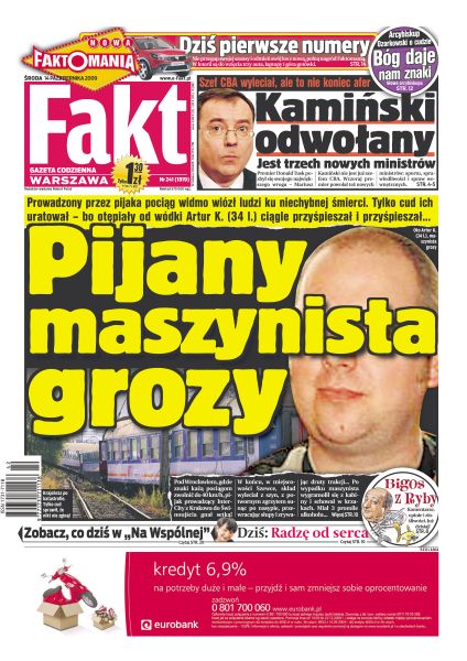 stoczniowej, afera związana z rządem Platformy - tym razem CBA zaatakowało Ministerstwo Finansów; zrozpaczony, zdesperowany ojciec wymierzył sprawiedliwość gwałcicielom swego dziecka; Stockinger miga się przed prokuraturą; ubogi rencista został oszukany przez nieuczciwego sprzedawcę; przedsiębiorco, zobacz, co musisz zrobić, by zawsze kupować taniej niż inni; Grzegorz Lato zapowiedział, że jeśli przez rok nic nie zdoła zmienić w wizerunku PZPN, poda się do dymisji.