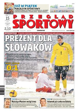 Słowacja po raz pierwszy zagra w finałach mistrzostw świata; o wyniku ostatniego meczu przegranych eliminacji zadecydował gol samobójczy; Michał Listkiewicz zamiast pomagać, wpędza właściciela klubu Polonia Warszawa w kłopoty; wywiad z Mauro Cantoro, pomocnikiem Wisły Kraków; Tomasz Adamek jest już gotowy do polskiej walki stulecia z Andrzejem Gołotą; Agnieszka Radwańska dobrze zaczęła wyścig do Masters, w Linzu pokonała Monicę Niculescu; zmiana trasy Tour de France, na której zawodnicy będą rywalizować w 2010 roku; do końca sezonu Formuły 1 zostały tylko dwa wyścigi - w decydujących startach ogromne znaczenie ma psychika.