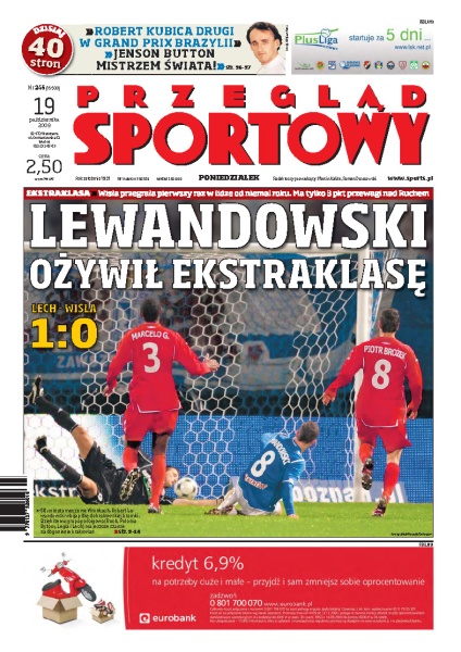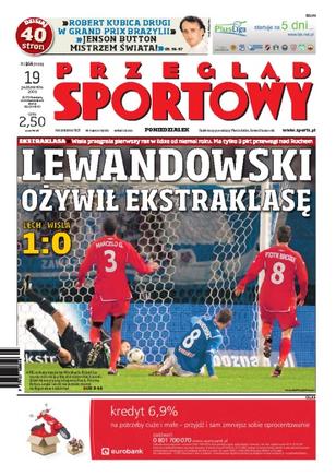 W meczu na szczycie piłkarskiej Ekstraklasy Wisła Kraków przegrała z Lechem Poznań 0:1 i ma tylko 3 punkty przewagi nad drugim w tabeli Ruchem; rozmowa z Robertem Lewandowskim; Robert Kubica zajął drugie miejsce w GP Brazylii, to pierwsze podium Polaka w tym sezonie; analiza spotkań 10. kolejki Ekstraklasy; Tomasz Gollob wywalczył srebrny medal mistrzostw świata, po tytuł, trzeci raz w karierze sięgnął Australijczyk Jason Crump.
