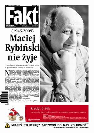Zmarł Maciej Rybiński, znany polski publicysta; prezes Narodowego Funduszu Zdrowia chce dołożyć do pensji urzędników kolejne 8 milionów zł, ale na operacje ratujące życie brak środków; do czego posłowie wykorzystują służbowe limuzyny; historia chłopca, który uratował dziadków z pożaru; Kasia Cichopek i Marcin Hakiel planują kolejne dziecko; Franciszek Smuda dogadał się z PZPN w sprawie warunków zatrudnienia na stanowisku selekcjonera reprezentacji Polski.