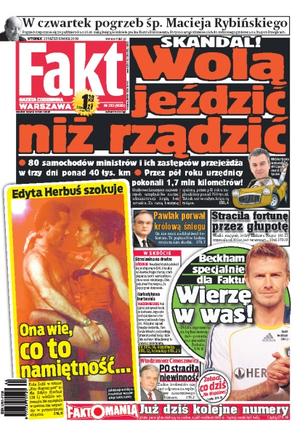 Rozmowa z Włodzimierzem Cimoszewiczem na temat wniosków jakie płyną z afer ujawnionych ostatnio przez CBA; 1,7 miliona kilometrów przejechali przez pół roku służbowymi limuzynami ministrowie i ich zastępcy – kto za to zapłaci; w jakich kobietach gustuje Waldemar Pawlak; historia psa, który wytropił włamywacza; Edyta Herbuś zadebiutuje w piątek na deskach Teatru Ochoty w Warszawie; jak Tomasz Adamek świętował po wygranej walce z Andrzejem Gołotą.
