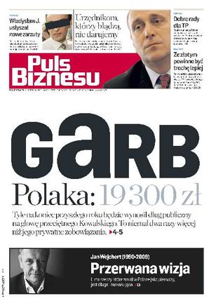 Niedługo zadłużenie państwa na osobę będzie dwukrotnie wyższe od prywatnego zadłużenia Kowalskiego; Tepsa nie narazi przychodów dużą obniżką cen internetu; władze miasta Łomża chcą budować z prywatnym biznesem halę targową i odnowić dworzec autobusowy; zdaniem prokuratury, Władysław J. transferował pieniądze z PZU do rajów podatkowych; pożegnanie Jana Wejcherta, który zmarł kilka dni temu w wieku 59 lat; większość analityków oczekuje lekkiego umocnienia złotego w listopadzie; w tym tygodniu poznamy kolejne raporty z II kwartału – będzie duży wzrost zysków, ale nie zawsze wynikających z działalności operacyjnej.