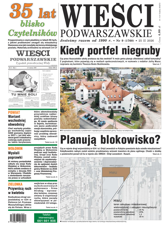 Wieści Podwarszawskie niezależny tygodnik lokalny, obszar powiat wołomiński, tematyka lokalna informacyjna, społeczno - kulturalna, sport, rozrywka, reklamy, ogłoszenia drobne. Ukazuje się w środy.
