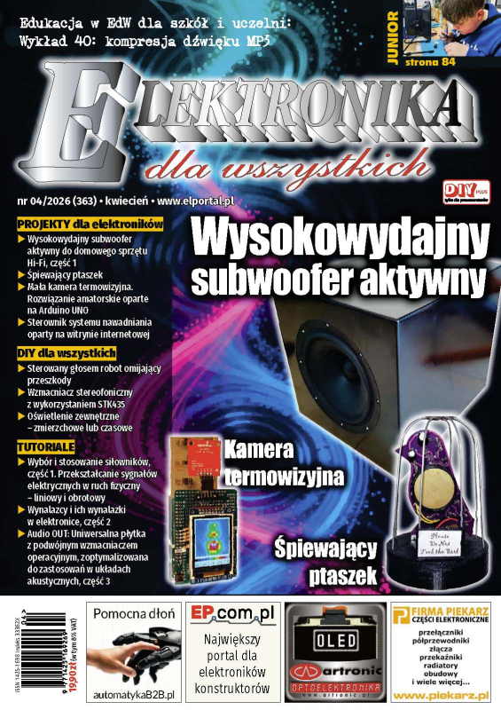 Elektronika dla Wszystkich to kultowe pismo osób fascynujących się praktycznym konstruowaniem układów. Silną stroną pisma jest współtworzenie jego treści z Czytelnikami. Czerpiąc wiedzę na temat nowoczesnych podzespołów i rozwiązań układowych, uczestniczą oni również aktywnie w rozwiązywaniu zadań z zakresu konstrukcji układów elektronicznych.