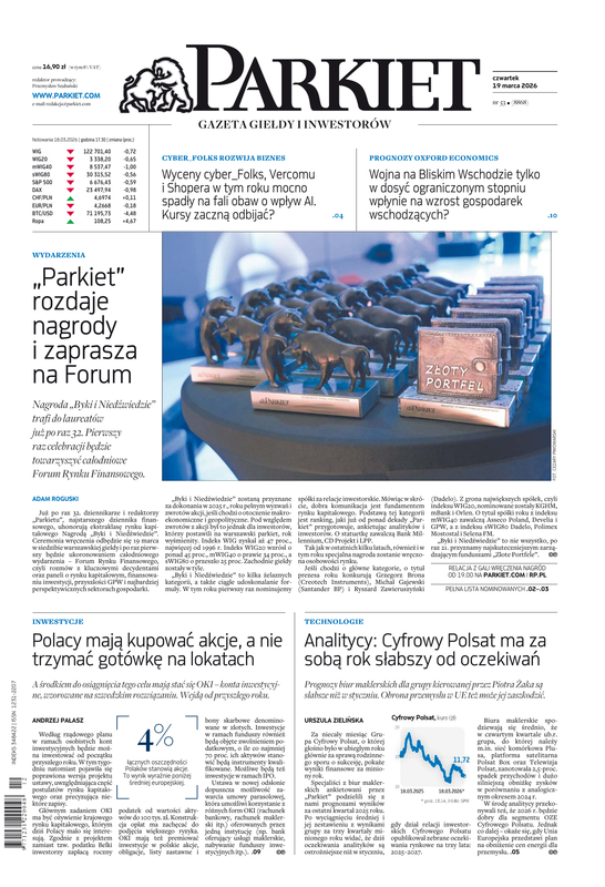 Największy w Polsce newsroom gospodarczy zbiera, analizuje i zgłębia dla Państwa najważniejsze informacje ze świata finansów. Codzienne wydanie „Parkietu”, sześć dni w tygodniu, to kilkadziesiąt artykułów o emitentach, instytucjach finansowych, gospodarce. To również opinie, felietony i wywiady z najważniejszymi ludźmi krajowej i globalnej finansjery.