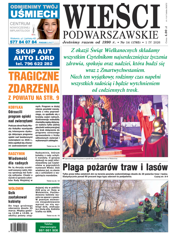 Wieści Podwarszawskie niezależny tygodnik lokalny, obszar powiat wołomiński, tematyka lokalna informacyjna, społeczno - kulturalna, sport, rozrywka, reklamy, ogłoszenia drobne. Ukazuje się w środy.