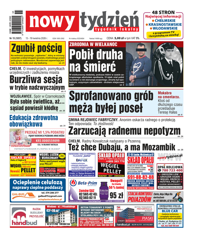 Gazetę opracowuje profesjonalny zespół doświadczonych dziennikarzy i grafików, którzy tworząc Nowy Tydzień, informują lokalną społeczność o wszystkich ważnych wydarzeniach z życia regionu. Nasi reporterzy są w każdej gminie, każdej miejscowości, na każdym osiedlu. Docierają wszędzie tam, gdzie potrzebują tego czytelnicy. Zawsze najbliżej spraw lokalnych społeczności i właśnie na tym budujący swój sukces. Gazeta zarówno w wersji podstawowej jak i mutowanej liczy 32 strony.