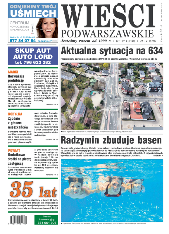 Wieści Podwarszawskie niezależny tygodnik lokalny, obszar powiat wołomiński, tematyka lokalna informacyjna, społeczno - kulturalna, sport, rozrywka, reklamy, ogłoszenia drobne. Ukazuje się w środy.