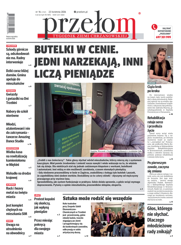 „Przełom” jest jedną z najlepszych i największych gazet lokalnych w Polsce. Powstał 16 września 1990 r. i ukazuje się nieprzerwanie do dziś. Zasięgiem obejmuje obecnie pięć gmin powiatu chrzanowskiego: Alwernię, Babice, Chrzanów, Libiąż i Trzebinię oraz gminę Krzeszowice w powiecie krakowskim i gminę Chełmek w powiecie oświęcimskim. W 1994 r. zdobył I nagrodę IDEE (Fundacji na Rzecz Demokracji w Europie Wschodniej, a w 2000 r. tytuł gazety 10-lecia sygnowany przez premiera rządu RP i ministra kultury. Tytuł dwukrotnie nagradzany przez Narodowy Fundusz Ochrony Środowiska, w 2000 r. zdobył I nagrodę w konkursie dla gazet mających największy wpływ na kształtowanie świadomości ekologicznej.