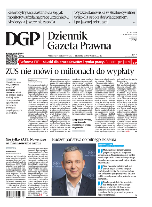 Gazetę wzbogacają praktyczne dodatki dla specjalistów, niedostępne w kioskach: Księgowość i Podatki, Rachunkowość i Audyt, Firma i Prawo, Samorząd i Administracja, Prawnik, Kadry i Płace, Ubezpieczenia i Świadczenia. NOWOŚĆ 2021 r. dodatki Biuro Rachunkowe i Księgowość Budżetowa (dostępne raz w miesiącu). Dodatkowo publikujemy wyjątkowo cenione przez Czytelników specjalne dodatki dotyczące najważniejszych zmian, nowych rozwiązań, na gorąco odpowiadamy na pytania. Piszemy o pracy zdalnej, o tarczach antykryzysowych, o nowych przepisach do walki z epidemią, o sposobach walki z zatorami płatniczymi i nowych obowiązkach pracodawców. Zapewniamy bezpieczeństwo w stosowaniu zmieniającego się prawa.