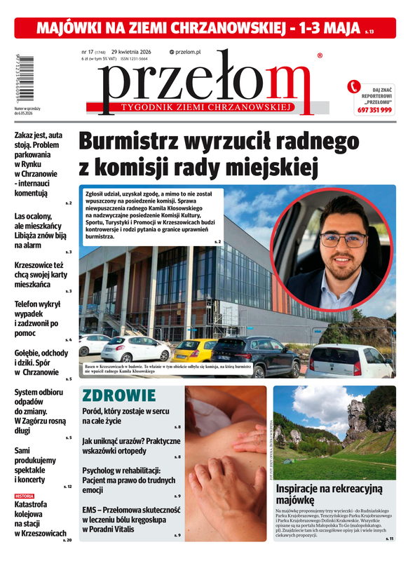 „Przełom” jest jedną z najlepszych i największych gazet lokalnych w Polsce. Powstał 16 września 1990 r. i ukazuje się nieprzerwanie do dziś. Zasięgiem obejmuje obecnie pięć gmin powiatu chrzanowskiego: Alwernię, Babice, Chrzanów, Libiąż i Trzebinię oraz gminę Krzeszowice w powiecie krakowskim i gminę Chełmek w powiecie oświęcimskim. W 1994 r. zdobył I nagrodę IDEE (Fundacji na Rzecz Demokracji w Europie Wschodniej, a w 2000 r. tytuł gazety 10-lecia sygnowany przez premiera rządu RP i ministra kultury. Tytuł dwukrotnie nagradzany przez Narodowy Fundusz Ochrony Środowiska, w 2000 r. zdobył I nagrodę w konkursie dla gazet mających największy wpływ na kształtowanie świadomości ekologicznej.