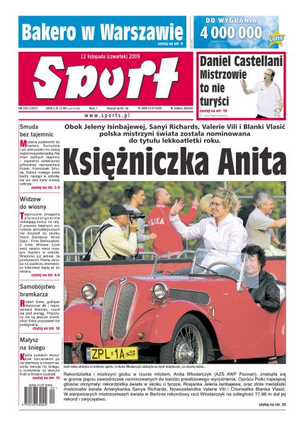 Po bardzo słabej grze Górnik remisem zakończył sezon 2009; ŁKS przegrał po raz ostatni 20 września, a od tego czasu notuje już tylko zwycięstwa, sporadycznie przerywane remisami; pierwszy bramkarz reprezentacji Niemiec rzucił się pod pociąg; polscy skoczkowie odbyli pierwszy trening na śniegu; dobra gra Asseco Prokomu w dwóch kwartach to za mało, by myśleć o pokonaniu Panathinaikosu; trener reprezentacji mężczyzn, Daniel Castellani, poleciał nawet do Kataru, aby obejrzeć dwa mecze mistrza kraju, PGE Skry Bełchatów.