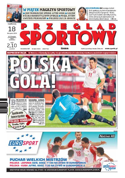 Dziś polska reprezentacja rozegra ostatni mecz w tym roku - przeciwnikiem będzie Kanada; debata o problemach polskiej piłki nożnej; rozmowa ze Sławomirem Peszką, reprezentacyjnym pomocnikiem; wywiad z Tomaszem Radzińskim, napastnikiem drużyny kanadyjskiej; dziś wyjaśni się, które drużyny pojadą na piłkarskie mistrzostwa świata w 2010 roku; Marcin Dołęga chce wywalczyć tytuł mistrza świata w podnoszeniu ciężarów; wywiad z Łukaszem Kubotem.