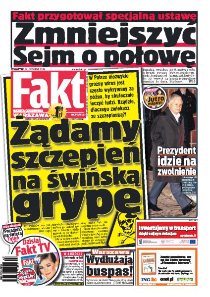 W Polsce niezwykle groźne wirusy są wykrywane zbyt późno, by skutecznie uchronić przed nimi obywateli; ograniczenie liczby posłów to zwiększenie oszczędności, ale także poprawa jakości pracy Sejmu, czy takie rozwiązanie będzie możliwe; prezydent Lech Kaczyński wyszedł ze szpitala; na co wydają pieniądze polscy urzędnicy; 18-letnia Renata M. trzymała płód w lodówce; dzięki funduszom z UE polskie miasta inwestują coraz więcej w transport miejski.