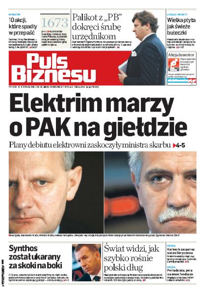 Dzięki interwencji PB i Janusza Palikota Sejm przyśpieszy prace nad karami dla urzędników; Zespół Elektrowni PAK trafi wkrótce na warszawską giełdę, ale Skarb Państwa jest zaskoczony taką informacją; światowe rynki finansowe widzą budżetową mizerność Polski; za kilka tygodni na NewConnect wejdzie fundusz, który pomaga firmom sięgającym po unijne dotacje; WDM i Totmes zacieśniają więzy i zainwestują w biotechnologię i długi.