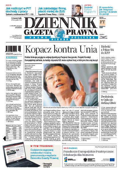 Dziennik Gazeta Prawna – codziennie obiektywne i rzetelne informacje z kraju i ze świata. Piszemy o tym, co dziś ważne i odpowiadamy na Wasze pytania – szczególnie te związane z obecnymi wyzwaniami tj. pandemia, praca zdalna. Na bieżąco wyjaśniamy zmieniające się przepisy. Wspieramy się wyjaśnieniami ministerstw i urzędów. Pomagamy unikać błędów i ostrzegamy, jakie są kary. Ponadto w każdy piątek specjalne magazynowe wydanie Dziennika Gazety Prawnej w całości z tekstami społeczno-ekonomicznymi.