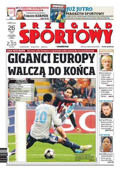 Analiza spotkań 5. serii fazy grupowej Ligi Mistrzów; debata o problemach polskiej piłki nożnej – jakich sędziów potrzeba w ekstraklasie; jakich zmian kadrowych dokona trener Wisły Kraków; przybliżenie sylwetki Tomasza Adamka; już jutro w Kuusamo odbędzie się pierwszy konkurs Pucharu Świata w skokach narciarskich; w finałach ATP w Londynie drugie zwycięstwo odnieśli Łukasz Kubot i Oliver Marach.