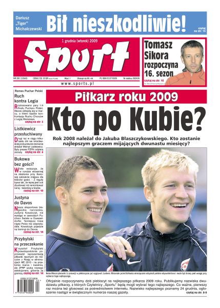 Kto zostanie najlepszym graczem mijających dwunastu miesięcy; na półmetku sezonu Piast Gliwice jest bliżej strefy spadkowej niż ubiegłej jesieni; Michał Listkiewicz stawił się w poniedziałek we wrocławskiej prokuraturze apelacyjnej, gdzie złożył wyjaśnienia w związku z postawionym mu zarzutem niegospodarności; na Camp Nou Real Madryt zagrał dobrze, ale nie na tyle, żeby pokonać Barcelonę; Justyna Kowalczyk nie wystąpi w najbliższych zawodach Pucharu Świata; Tomasz Sikora i Magdalena Gwizdoń myślą przede wszystkim o igrzyskach olimpijskich.