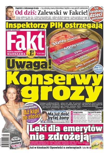 Jest nadzieja dla chorych, których nie stać na lekarstwa; Julia Pitera jeździ autem jak pirat i zagraża innym; zobacz co robią w życiu pociechy znanych ludzi; żona Kazimierza Marcinkiewicza kupuje tomiki poezji i szuka inspiracji u innych; szokujące wyniki kontroli PIH - co trzecia konserwa nie zawiera mięsa; nie zaakceptowali, że ich syn jest gejem; przedszkolanka głodziła psiaki; Paweł O. zmasakrował autem pana Mariana i nawet się nie zatrzymał; owinięta jedynie w ręcznik Alicja Bachleda-Curuś namiętnie całuje Colina Farrella; Tomasz Kuszczak nie zawiódł Fergusona; Serena Williams pokazała obfite kształty.
