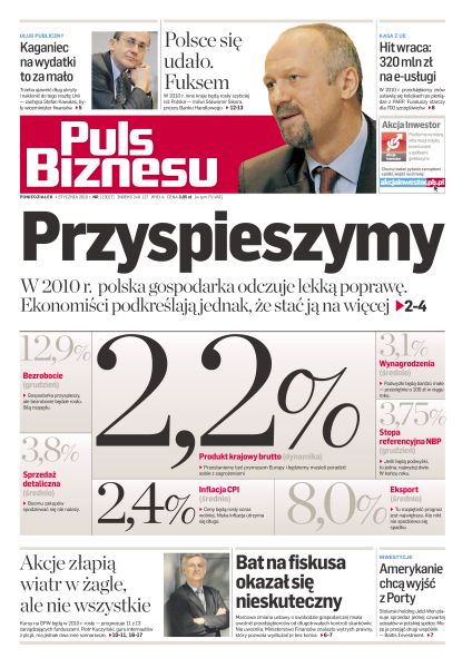 W 2010 roku polska gospodarka odczuje lekką poprawę - ekonomiści podkreślają jednak, że stać ją na więcej; Stefan Kawalec uważa, że gdy przyjdą lepsze czasy, budżet powinien mieć nadwyżkę; rząd powinien naprawić ustawę o swobodzie gospodarczej; około siedmiuset mikro i małych przedsiębiorców dofinansuje z unijnych funduszy usługi świadczone przez internet; w 2010 roku inni będą rozwijać się szybciej niż Polska, a rządowi trudniej będzie mówić o sukcesach; w tym roku trendy na rynkach finansowych nie będą tak silne, jak w minionym, ale okazji do zarobku nie zabraknie.